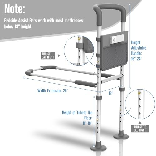 HIGH-QUALITY STEEL STRUCTURE – The bedside mighty rail provides durable support and safety for seniors, pregnant women, disabled, and adults who need assistance getting in and out of bed. Premium steel construction also offers stability to improve mobility around the bed.