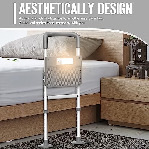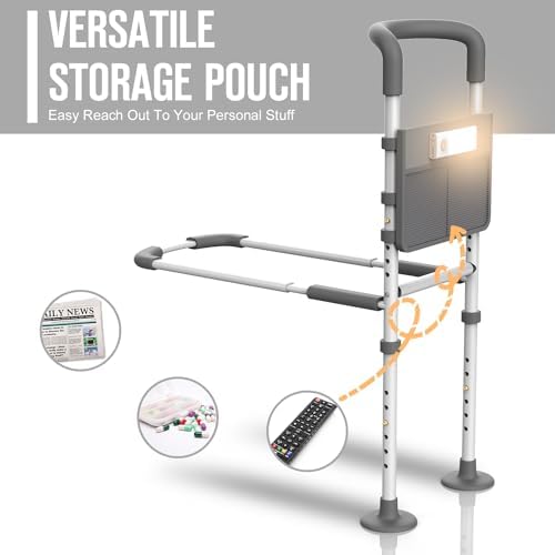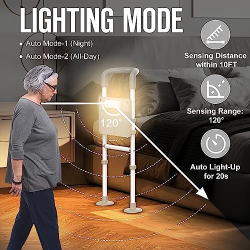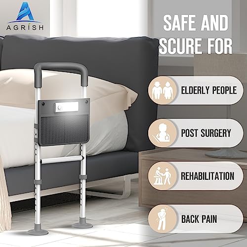 Agrish Bed Rails for Elderly Adults – with Motion Light & Storage Pouch, Bedside Assist Bar with Support Legs for Seniors & Surgery Patients – Adjustable Medical Bed Handles Fit Any Bed