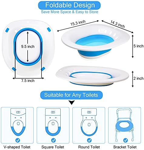 Sitz Bath for Hemorrhoids, Sitz Bath for Toilet Seat, Postpartum Care Treatment, Sits Bath Kit for Women, Perineum Relief, Foldable Easy to Store.