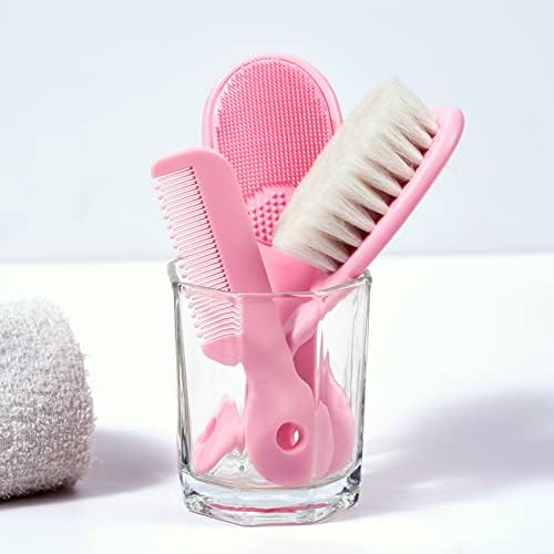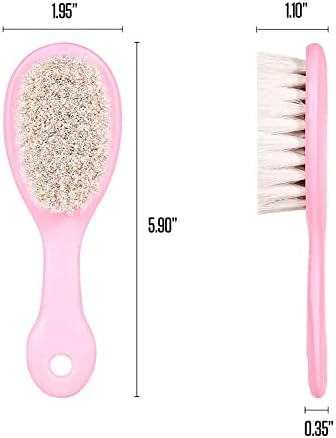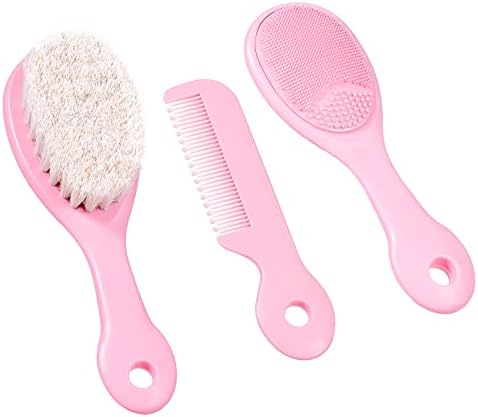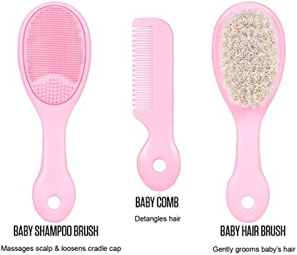 3 Piece Baby Hair Brush and Comb Set for Newborns and Toddlers (Pink)
