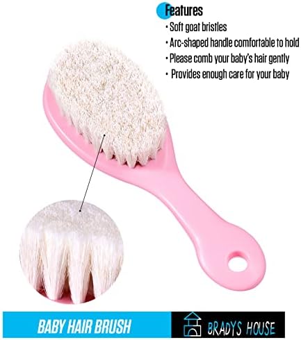 ②【BABY BRUSH AND COMB SET】This baby hair brush set includes 1pc infant goat hair brush, 1pc silicone baby shampoo brush and 1pc baby styling comb