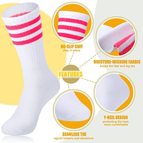 Hillban Sweatbands Striped Socks Set Sports Cotton Headband Wristband 80s Workout Athletic Accessory for Carnival Mardi Gras