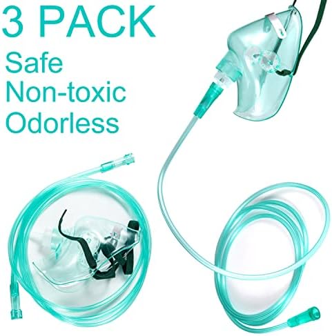Standard Oxygen Mask with 6.6′ Tubing and Adjustable Elastic Strap – 3 Packs – Size XL
