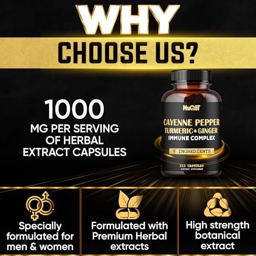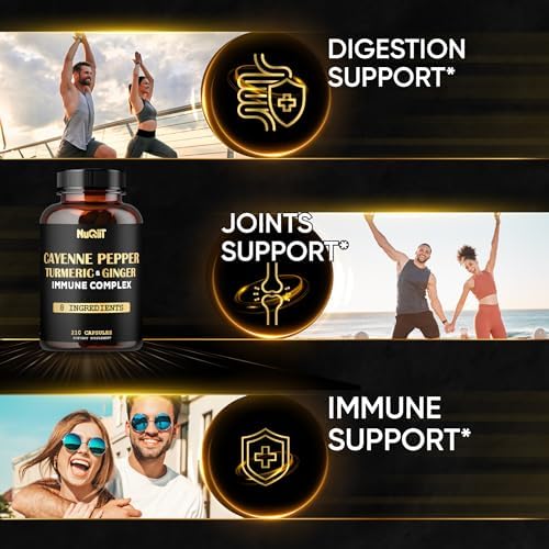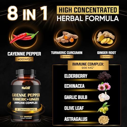 210 Pills – Cayenne Pepper Capsules Organic with Turmeric, Ginger, Immune Support Complex as Elderberry, Echinacea, Garlic Bulb – Digestion, Heart Health & Body Management