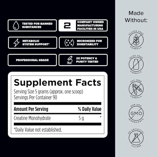 NSF Certified for Sport Creatine – Our creatine powder does not contain any of the 280+ substances banned by major athletic organizations. Our facility is GMP registered and audited twice annually for quality and safety by NSF International. 2x potency and purity tested.