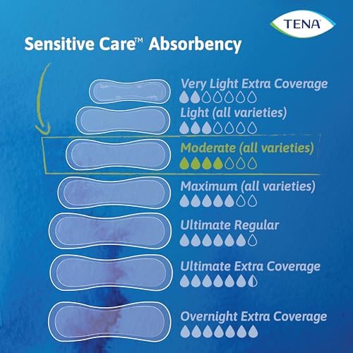 TENA Incontinence Pads, Bladder Control & Postpartum for Women, Moderate Absorbency, Long Length, Sensitive Care – 60 count