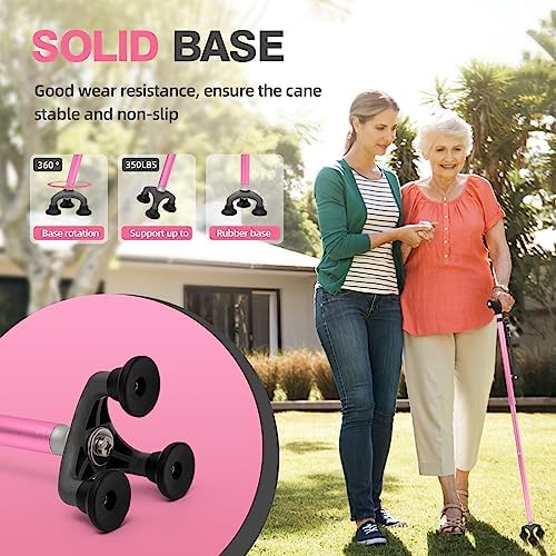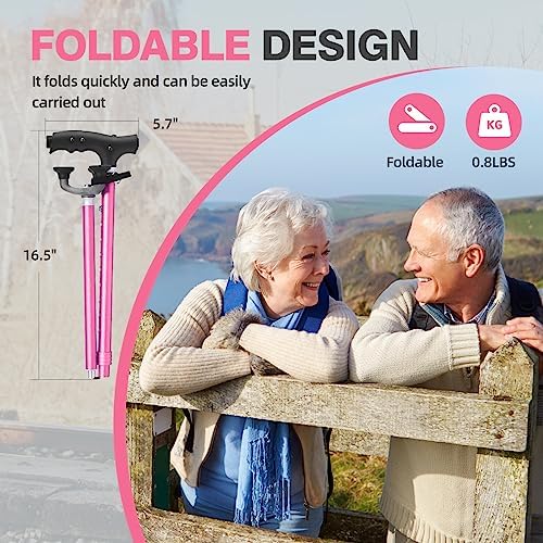 BeneCane Walking Cane Adjustable Cane Flexible Walking Cane with LED Light Lightweight Sturdy Portable Walking Stick – Balancing Mobility Aid for Men Women Seniors Comfortable Handle(Pink)