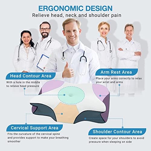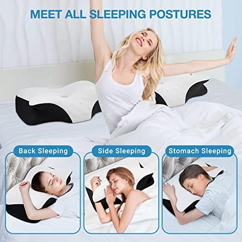 【2 HEIGHTS TO CHOOSE】When you are still troubled about not finding the right height pillow, our cervical pillows have 2 different heights on both sides to choose, so you can sleep on the comfortable side for your sleeping posture. There are specific grooves that allows your arms to go under for nice sleep. The ergonomic and supportive orthopedic pillow for neck pain is designed for multiple sleeping positions, such as side sleeping, stomach sleeping, back sleeping and low pillow sleepers etc.