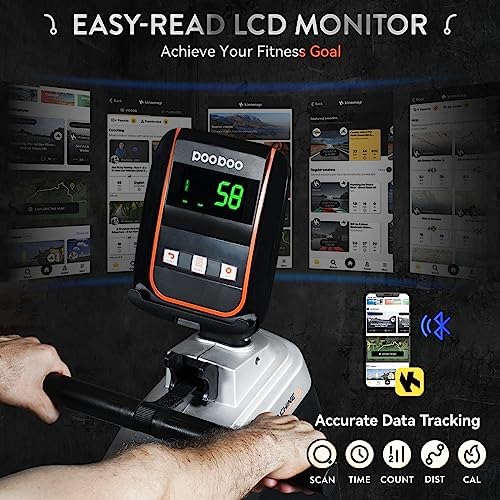 【Easy-Read Monitor】The large digital display with backlight clearly shows workout data: scan, time, distance, calories burned, count, and spm. You can also set the rowing screen to a countdown, which is convenient for you to know and track the effects of exercising. The tablet holder can hold your phone or iPad, allowing you to listen to music and watch videos while enjoying your workout. With the built-in KINOMAP APP, you can also connect your mobile phone to make rowing more fun.