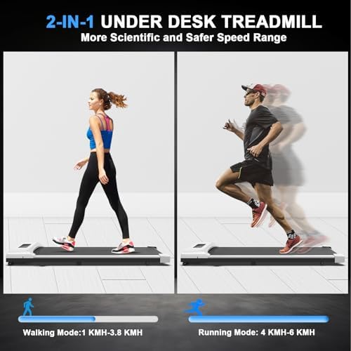 PERFECT OPTION& NO INSTALLATION REQUIRED:This desk treadmill is great for personal use and offers fun for the entire family, including older individuals. It is also a thoughtful present option for your loved ones. The foldable design with transport wheels allows for easy maneuverability and storage, helping you save space in your home by placing it under furniture, in corners, or under beds.