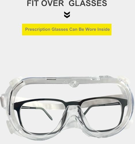 4 Pack Protective Safety Goggle for lab chemistry soft lightweight goggles over prescription glasses Anti-Fog worker construction Eye protection Science Onion Cutting and More White