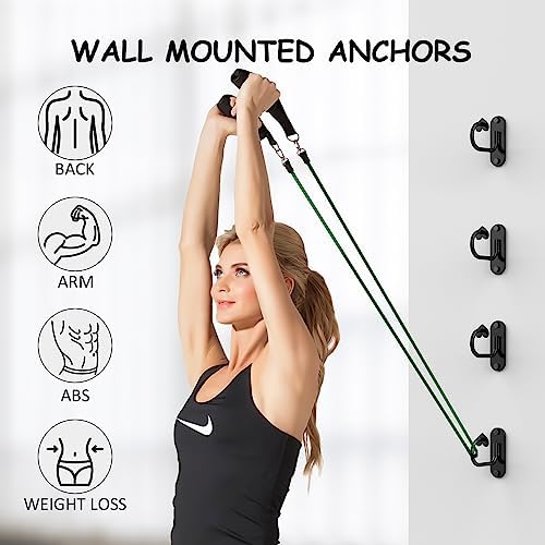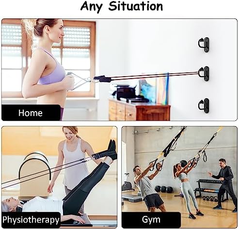 【Package Include】This home exercise equipment anchor package includes 4 resistance band hooks, 8 screws, and washers. These 4 resistance band wall anchors are supported to install them at 4 different heights or spaces. Hundreds of pulling workout poses are able to be finished by this anchor.