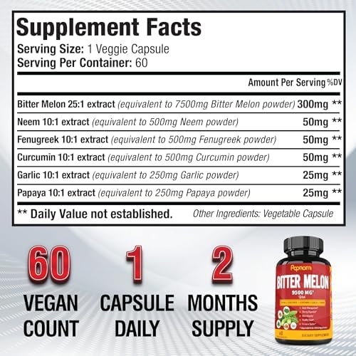 Bitter Melon Supplement is derived from 6 ingredients, including Bitter Melon 25:1 extract, Neem, Fenugreek, Turmeric Curcumin, Garlic and Papaya; The professional formula is a natural and effective solution for a modern and healthy lifestyle.