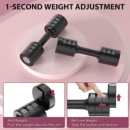 【1-Second Weight Adjustment】This women dumbbell set adopts an innovative embedded design that allows weight blocks to be added or removed directly. Push the weight block to lock or slip the button to remove, allowing you to enjoy a simpler and smoother workout.