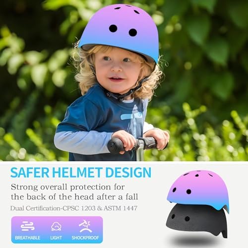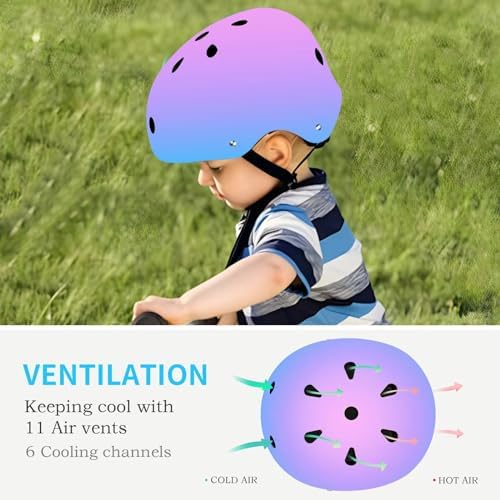 Adjustable Gradient Color Kids/Toddler Bike Helmet for 1-2-3-5-8-14 Years Boys Girls,Skateboard Helmet with Knee and Elbow Pads Wrist Guard Roller Skates,Cycling,Skating Scooter Longboard