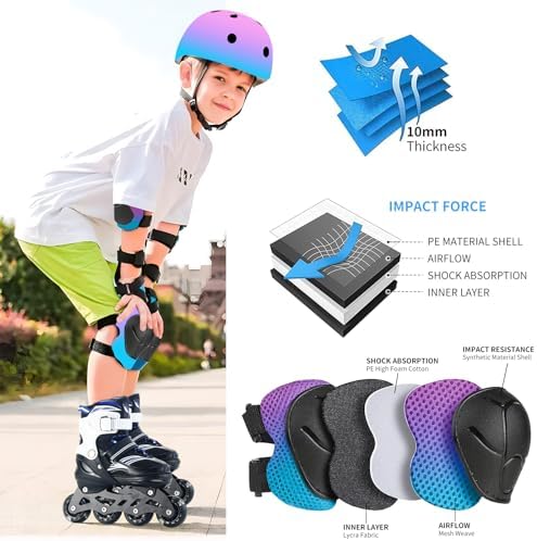 ❤️【WIDE APPLICATION】: The kids helmet and knee elbow pads with wirst guards are designed for kids sports saftey protection especially for any outdoor activities for many outdoor sports such as skating,skateboard, riding bikes,scooters roller,blading cycling,biking, snowboarding, balance bike ice and roller cycling skating,rolling,ATV, BMX and other extrem sports.