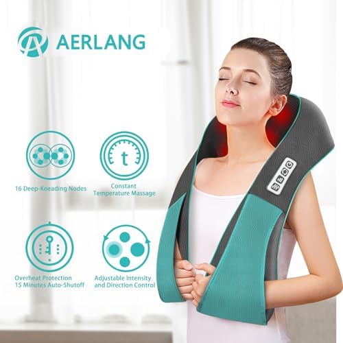 AERLANG Shiatsu Back and Neck Massager, Heating to Relieve Deep Tissue Pain, 3D Kneading Massage to Relieve Legs, Foot Muscles, Gift for Mom Dad Men Women