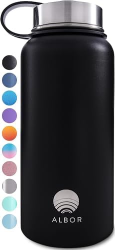 ALBOR Insulated Water Bottle with Straw, 32 Oz – Black