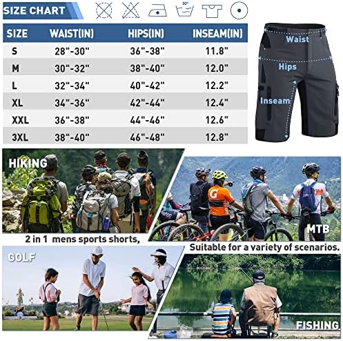 Ally Mens MTB Mountain Bike Shorts 4D Padded Baggy Bicycle Cycling Biking Bike Shorts Lightweight Loose-fit