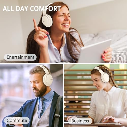 AMORNO Bluetooth Headphones Over Ear, 110 Hours Playtime Wireless Headphones with Mic, Foldable Adjustable Lightweight HiFi Stereo Headset for Cellphone/PC/Work/Travel (White)
