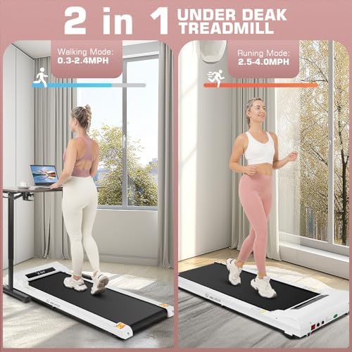 【2 in 1 Under Desk Treadmill】 ANCHEER foldable treadmill has 2 modes with adjustable speed range: 0.3-3.9MHP, 0.3-2.4MHP is suitable for walking under desk office use, 2.4-3.9MHP is suitable for running, which meets the different needs of your work mode and exercise mode, and brings you a different sense of experience in your boring life.