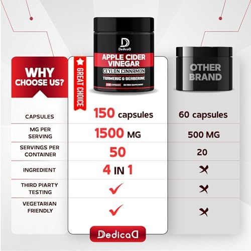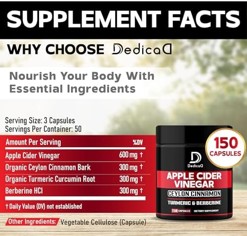 💚 Satisfaction Guarantee: The ingredients are vinegar pills, organic ceylon cinnamon powder, curcumin supplements, and berberine plus supplements for 4 in 1 apple vinegar pills. DedicaD herbal product support will protect your wellness and help you live a fulfilling life. We put our customers’ interests first and are dedicated to providing quality products.