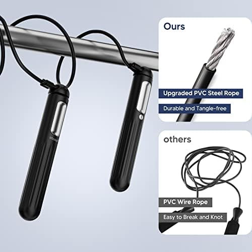 【Durable & Adjustable Steel Rope】This jump ropes for fitness crafted with a 3M/9.85FT adjustable rope, this fitness jump rope with a sturdy steel construction encased in a PVC sheath, ensuring durability, wear-resistance, and tangle-free performance. With tool-free rope length adjustment, it’s suitable for both children and adults, making it an ideal choice for the whole family to share.