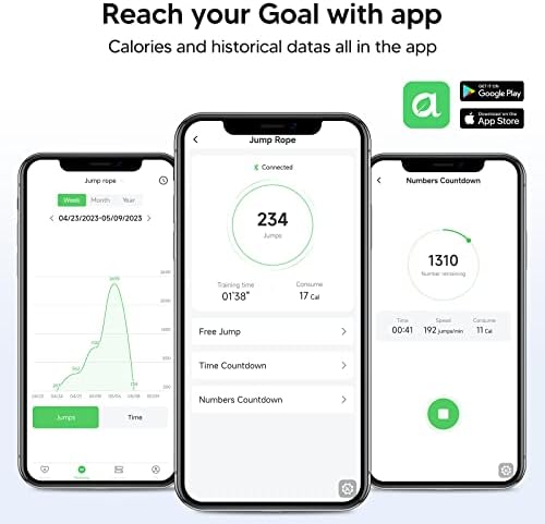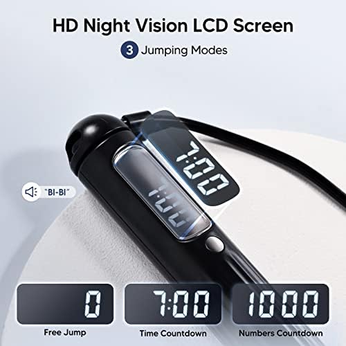 【3 Jumping Modes & Precise Counting】Elevate your workout with our digital jump ropes offering three custom jumping rope modes: free jump, time countdown, and numbers countdown. Tailor your routine to your jumprope for fitness, and let every leap count. With our high-precision dual Hall counter chip, rest assured in the accuracy of your workout data, ensuring precision in every step of your fitness journey.