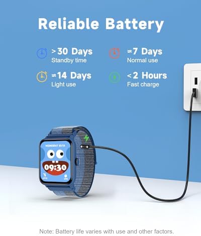 Customizable Watch Face&1.5″ HD Touch Screen:Our kids smartwatch boasts a 1.5″ HD touch screen and offers 50 exquisite cloud dials. Elevate personal style with custom dials using your kids’ own photos and ignite their creativity!