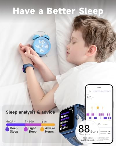 Comprehensive Health Monitoring: Monitors real-time heart rate, blood oxygen levels, and tracks sleep patterns to promote your child’s well-being.
