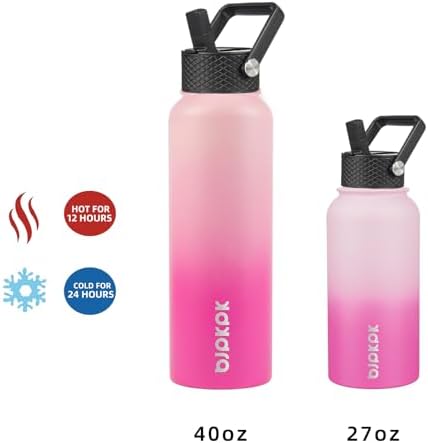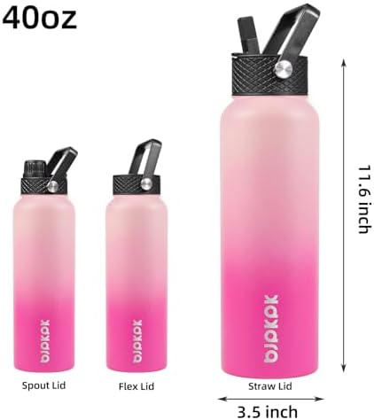 BJPKPK Insulated Water Bottles with Straw Lid, 40oz Stainless Steel Water Bottles with 3 Lids, Large Metal Water Bottle, BPA Free Leakproof Thermos Water Bottle for Sports & Gym- Sakura