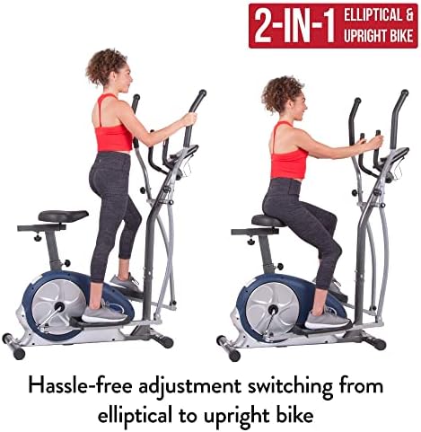 Body Champ 2-in-1 Upright Exercise Bike and Elliptical Trainer with Seat, Heart-Rate Monitor, and Programmable LCD Console, BRM3671