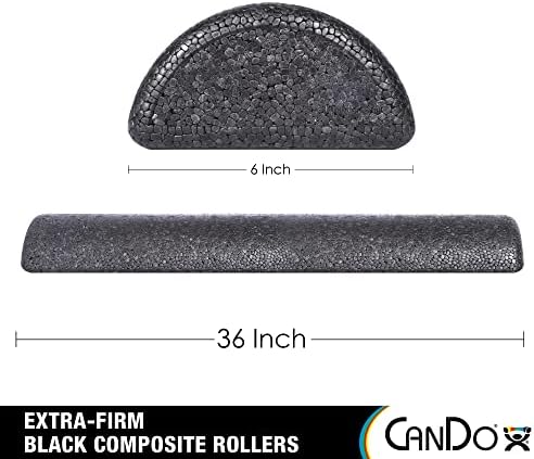CanDo Black Composite High-Density Extra Firm Foam Roller for Muscle Restoration, Massage Therapy, Sport Recovery and Physical Therapy are made of molded foam for increased firmness and durability. The extra-firm design makes this roller ideal for massaging, recovery and rehabilitation. The high-density foam provides durability for long-term use while also maintaining its shape even after repeated use. As seen in PT offices and gyms nationwide, this Foam Roller is ideal for stretching and rehabilitating hips, legs (thighs, knees, calves, ankles) back, neck and shoulders. High-density rollers are the perfect myofascial release tool for CrossFit, Yoga, Pilates, Weight Training, Bodybuilding, Dance, Parkour and MORE! Sore and achy? This roller is relief. Myofascial release helps increase blood flow and the mobility of the fascia tissue. This action over time eliminates pain, restores motion and maximizes performance. Use to reduce post workout soreness in the back, hips, legs (thighs, knees, calves, ankles, feet), neck, IT-Band, and shoulder muscles. This roller is the one to use for releasing tension in muscles and tissue after workouts, running, physical therapy, and even work! These Composite foam rollers are also perfect for positioning, balance, muscle posture re-education, spinal stabilization, and other flexibility, strengthening and range of motion exercises. Use it to enhance your workout by making push-ups, planks and other exercises more challenging. After a workout, let this roller become your own personal massage therapist, and use them to give yourself a deep tissue massage, slowly rolling over various areas of your body. You’ll break up scar tissue, speed up workout recovery and increase blood flow and circulation. The half-roller, because it’s so much firmer than standard rollers found elsewhere, is also a great tool for ankle stretching and knee rehabilitation. You can use it as a rocker board by standing on its flat side to improve balance and positioning. CanDo Black Composite High-Density Extra Firm Foam Rollers are offered in three lengths. Both a half-round and round at 6” x 36”, as well as half-rounds and rounds at the sizes of 6” x 12” and 6” x 18”. The diameter refers to the width of the half-round profile. The foam is durable enough to be used by large adults and active children while the soft design makes these great for beginners as well. Easy to clean, the entire roller (including the bottom), is closed cell, unlike other half-round rollers. It accommodates all body types and levels of fitness from beginners to professional athletes. Use them alone or with other exercisers. Choose the roller that is right for you!
