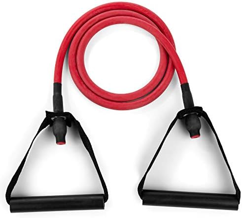 IDEAL RESISTANCE: Our durable, red workout resistance tube band with PVC grip has a medium resistance, so you can optimally work out your entire body! They are ideal for muscle and strength training, flexibility training, and stretching.