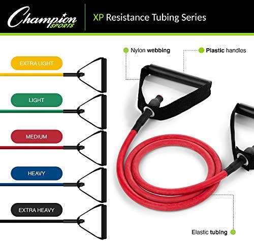 Champion Sports Resistance Tube Bands for Men and Women, Extra Light to Super Heavy Resistance – Durable Fitness Band for Strength Training, Stretching, Rehabilitation – Premium Home Workout Equipment