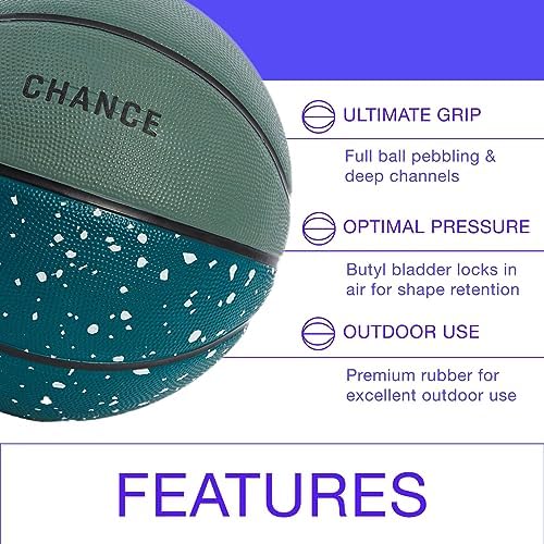 Chance Premium Design Printed Rubber Outdoor & Indoor Basketball, Available Size 5 Youth-27.5 inch; Size 6 Womens Official -28.5 inch; and Size 7 Men’s Official- 29.5 inch