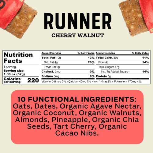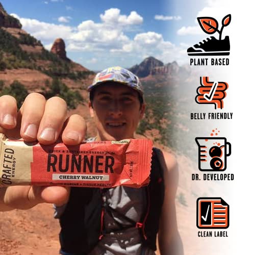 CRAFTED Functional Energy Bar – Sports Specific Quick & Sustained Energy | Natural Clean Label Ingredients to Support Energy, Fight Muscle Soreness, & Help You Work Harder & Recover Faster | Plant Based, Easy to Digest, Clean Ingredient Energy Bars | Pack of 12 52g Bars (Runner (Cherry Walnut))