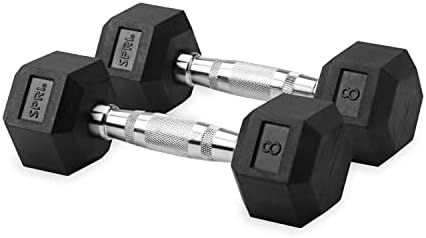 Deluxe grade, quality engineered and built to last a lifetime with black rubber-encased 8-sided dumbbells and chrome contoured handles designed to fit comfortably in the palm of the users hands. Black rubber encased coating increases durability, protects flooring, enhances appearance, and is easy to clean and reduces noise and the unique hex shape prevents rolling and stacks easily. NOTE: 30, 35, 40, 45 and 50lbs are sold as SINGLES – ALL other weights are sold as PAIRS: 3, 5, 8, 10, 12, 15, 20, and 25lbs.