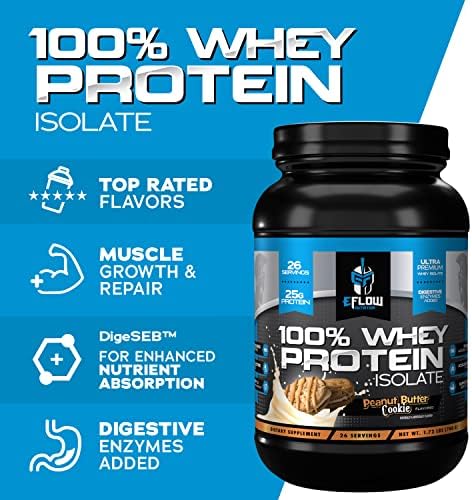 eFlow Nutrition 100% Whey Protein Isolate – Lactose-Free Digestive Enzymes Added, Low Carb, Post Workout Shake, Fast Digesting for Optimal Muscle Recovery – Peanut Butter Cookie (26 Servings)