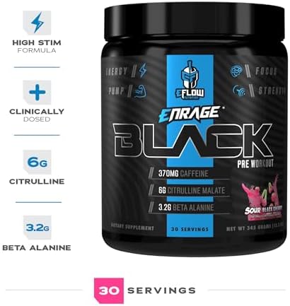 eFlow Nutrition Enrage Black High Stimulant Pre Workout Supplement – Preworkout Powder to Boost Energy, Pumps and Strength – 4 Flavors (30 Servings) (Sour Black Cherry)