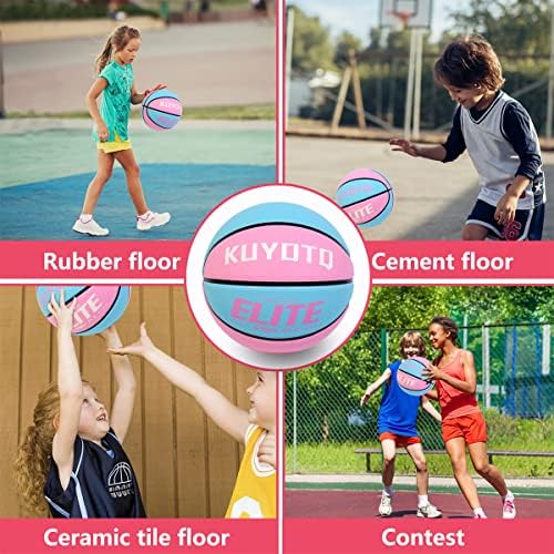 Elite Kids Youth Size 5(27.5″) Girls Womens Size 6(28.5″) Premium Rubber or Composite Leather Basketball in&Outdoor Game Training Competition Basketballs Gifts for Girls,Women (Deflated)