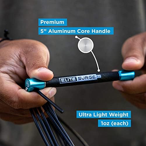 Elite SRS, Surge 3.0 Professional Speed Rope for Double Unders – Patented Dual Bearing Ultra Light-Weight Handle for Premium Spin Control and Kink-Resistant Cable for the Ultimate Speed Jump Rope
