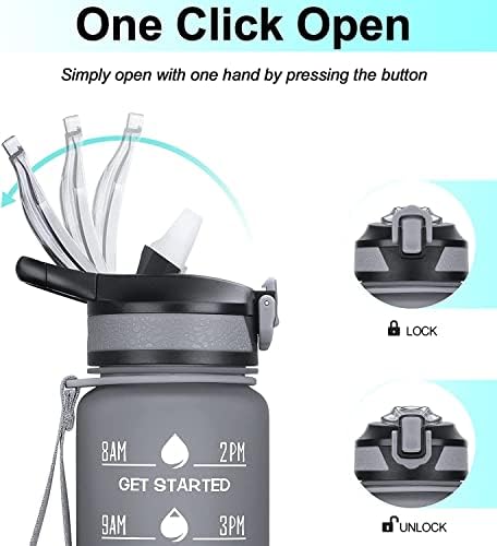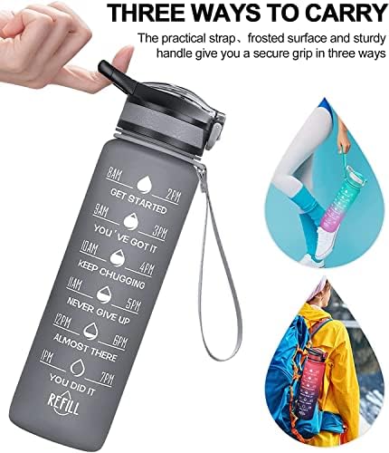 ELYPHINE 32/24 oz Water Bottles with Removable Straw & Time Marker, Motivational Sports Bottles with BPA Free Tritan Material, Leakproof Water Jug for Fitness