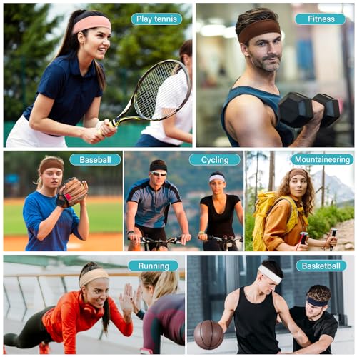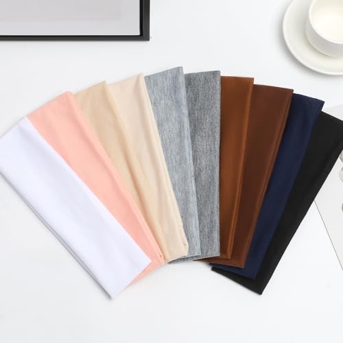 Etercycle Headbands for Women, 10 Pack Non Slip Sweat Bands Headbands, Unisex Sport Headband Elastic Soft Cloth Stretchy Head Bands for Workout Yoga Running Sports