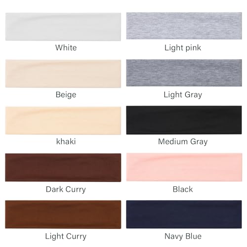 Comfort Colors Hair Band: Each sports headband measures 9 x 2.3 inches and can be stretched up to 13 inches. Choose from 10 elegant colors, including black, white, beige, light gray, medium gray, light pink, navy blue, khaki, light curry, and dark curry.