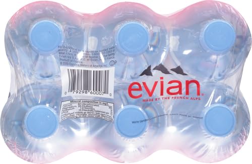 evian Natural Spring Water, PH Balanced with Natural Electrolytes, 33.8fl oz./1L Bottles (Pack of 6)