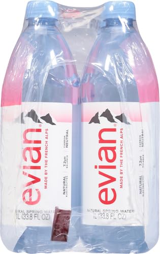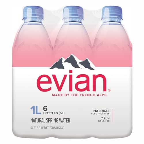evian Natural Spring Water, 1 Liter Premium Water Bottles, 33.8 Fl Oz (Pack of 6).