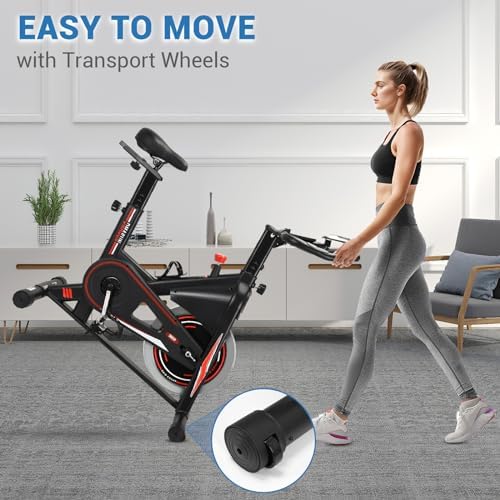 Exercise Bike, DMASUN Magnetic Resistance Pro Indoor Cycling Bike 330/350Lbs Weight Capacity Stationary Bike, Comfortable Seat Cushion, Multi – grips Handlebar, Heavy Flywheel Upgraded Version