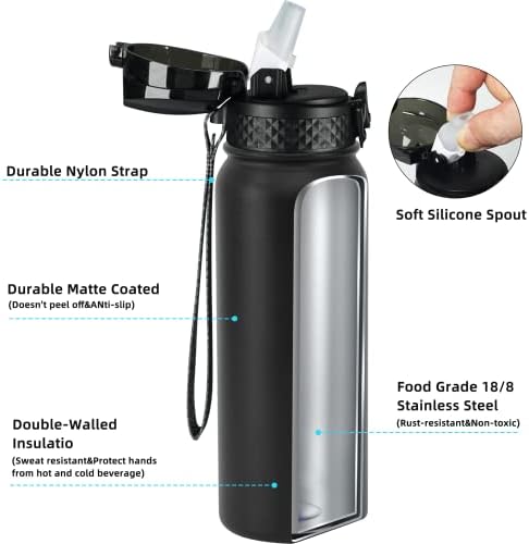 ONE-HANDED OPERABLE – The Fanhaw insulated water bottle with straw is a versatile hydration solution available in sizes ranging from 20 oz to 40 oz, perfect for any activity or occasion. The straw lid with one-handed operating technology makes it easy to drink on-the-go. You can easily operate the lid with just one hand, which is perfect for those who are always on the move.