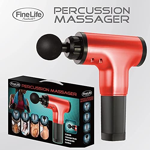 FineLife Products Deep Tissue Percussion Red Massager – Perfect for Muscle Recovery – Targeted Back Massager – Comes with 4 Different Attachment – Powerful Motor and Lasting Battery